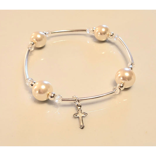 Joyful Blessings Bracelet – Handmade Faith Jewelry with Pearls, Cross Charm & Gift Packaging